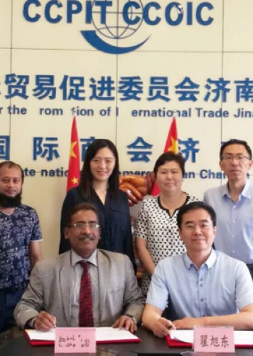 2017年6月27日,孟加拉國工商聯(lián)合會董事Runu先生和Raz先生來到我公司考察訪問,對我公司的工廠規(guī)模和專業(yè)程度贊嘆有加。當(dāng)即和金格瑞簽訂了在孟加拉國合作的MOU備忘錄。同時,在我公司外貿(mào)部門的介紹下,和中國國家貿(mào)促會濟(jì)南分會簽訂了商會之間的友好合作備忘錄。