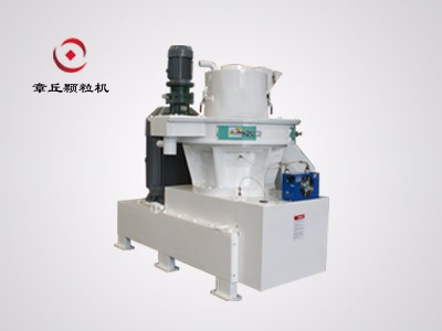 鋸末顆粒機(jī)主要由主電機(jī)、傳動機(jī)構(gòu)、轉(zhuǎn)子、環(huán)模、壓輥、刮刀、切刀組件及機(jī)身和門等組成。經(jīng)調(diào)質(zhì)器調(diào)質(zhì)的物料,由旋轉(zhuǎn)喂料錐和前板上兩個偏轉(zhuǎn)刮刀將料均勻地送入兩個壓輥與環(huán)模組成的壓制區(qū),通過環(huán)模和壓輥兩個相對旋轉(zhuǎn)件對粉料逐漸擠壓而擠入環(huán)模中成型,并不斷向外端擠出,由切刀把成型顆粒切成需要的長度,最后成型顆粒排出機(jī)外。